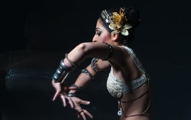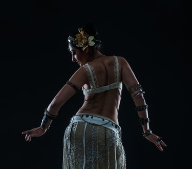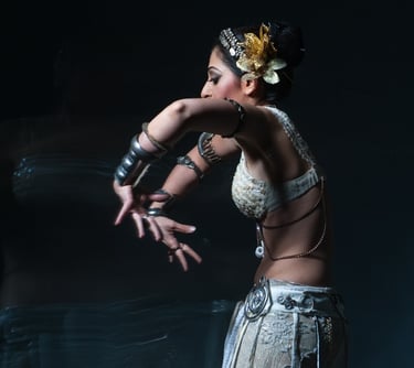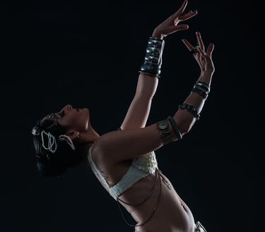 My work blends bellydance technique, breath awareness, meditation, and intuitive movement.